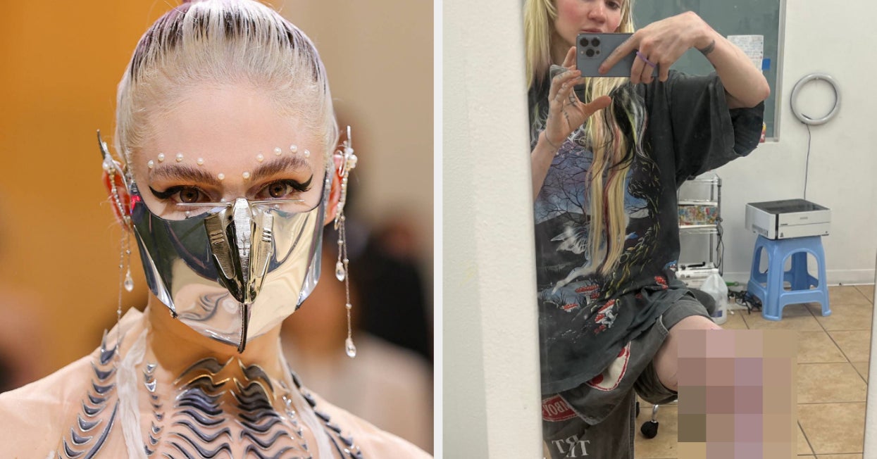 Grimes Debuts Massive Red Leg Tattoo E Online